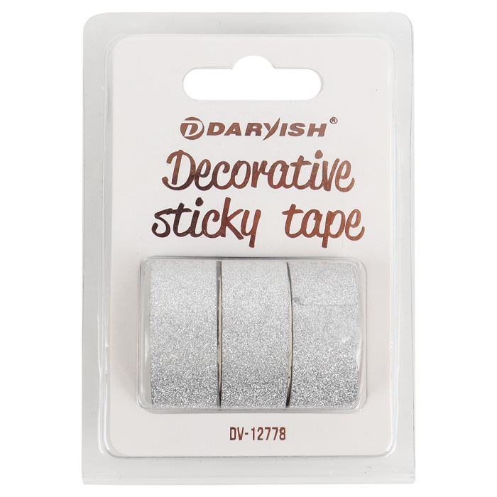 Материал д/творч Лента декоративная клейкая с блестками Набор 3тш 15мм*3м Серебро Darvish 6807