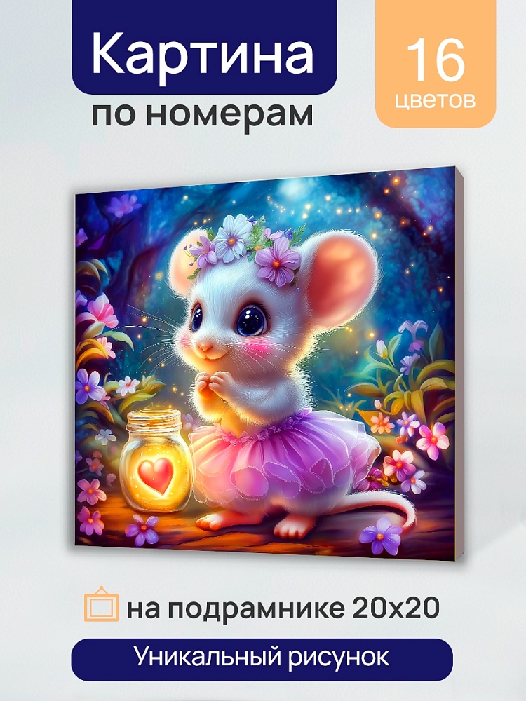 Холст с красками 20х20 см по номерам (в коробке) (16 цв.) Мышка в волшебном лесу (арт.Х-0748)