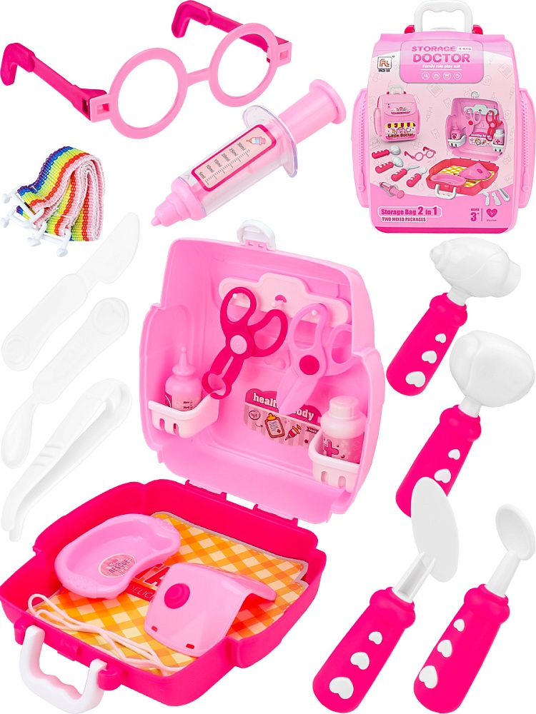 Игрушка Набор доктора в чемоданчике «СКОРАЯ БОЛЬНИЦА» ( 15 предметов) розовый (арт. 2465418)