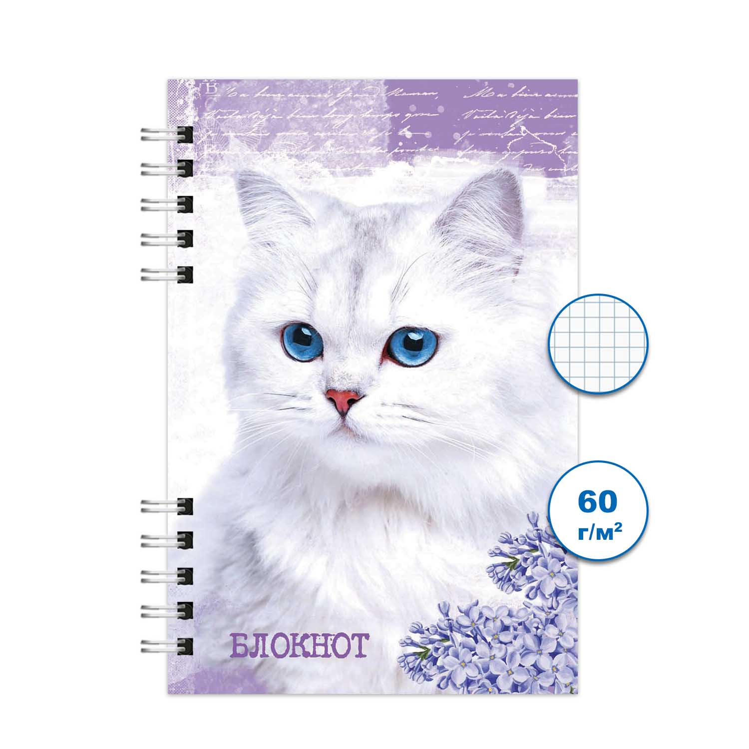 Блокнот А6 80л клетка на гребне Кошки 2 7445