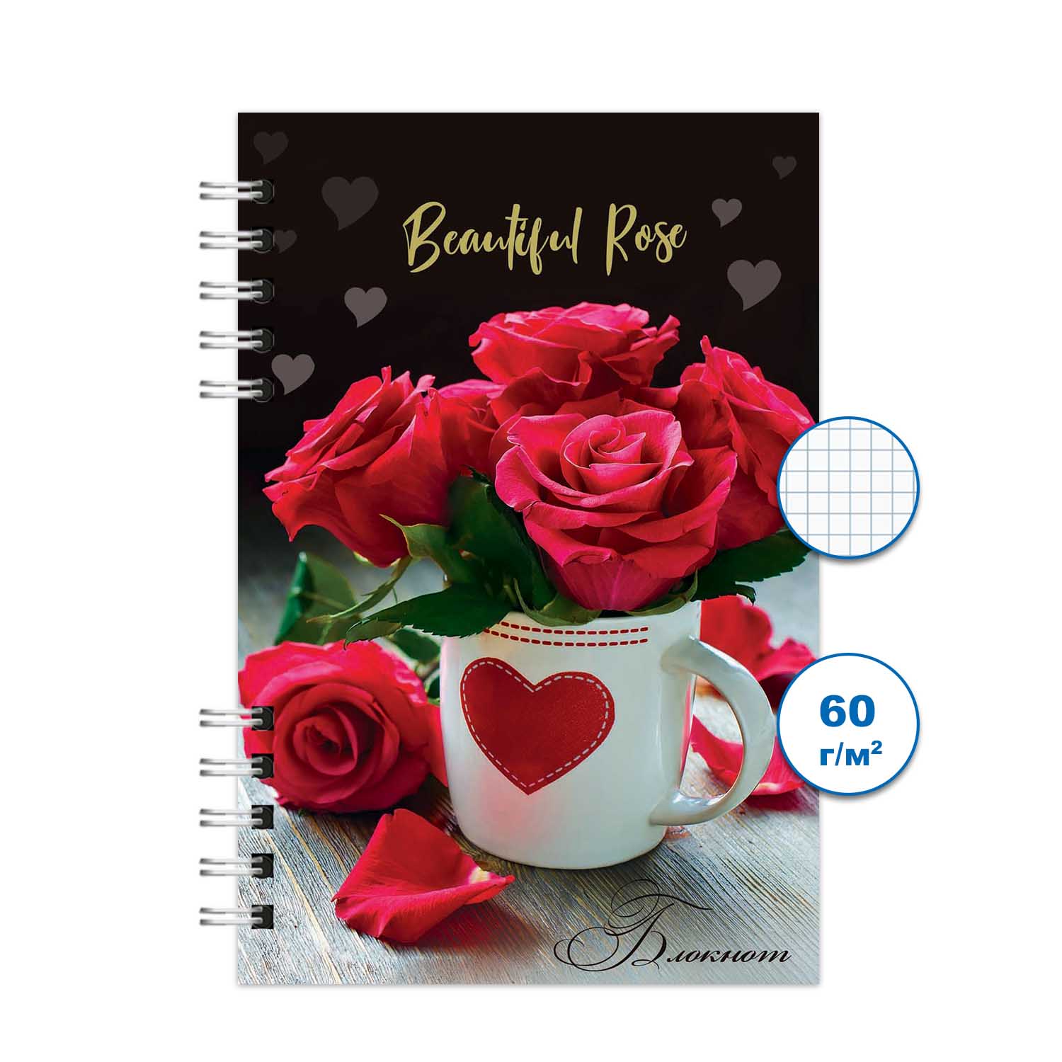 Блокнот А6 80л клетка на гребне Роза 1 9616