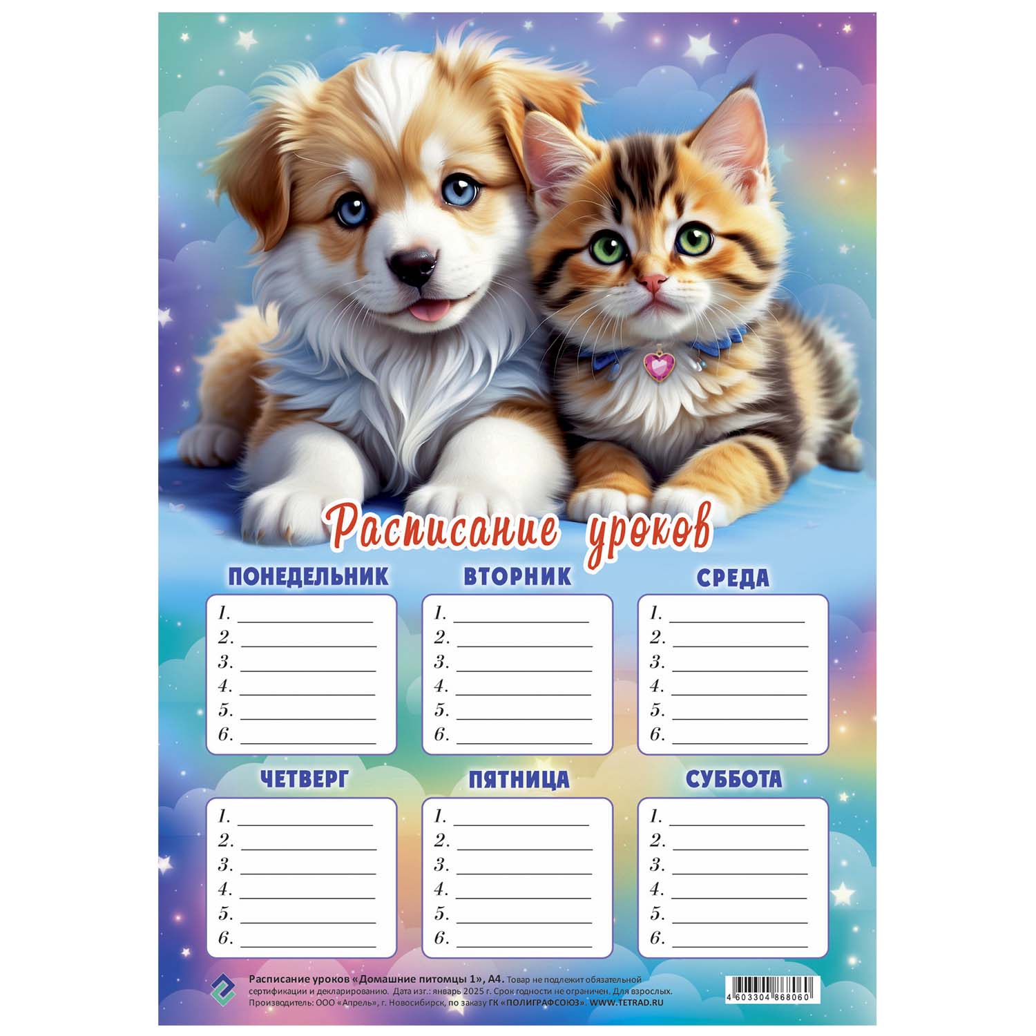 Расписание уроков 20*29 Домашние питомцы 1 8060