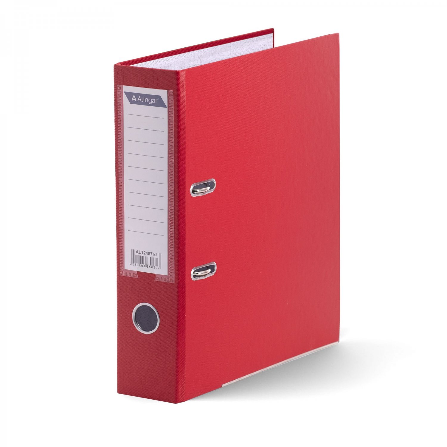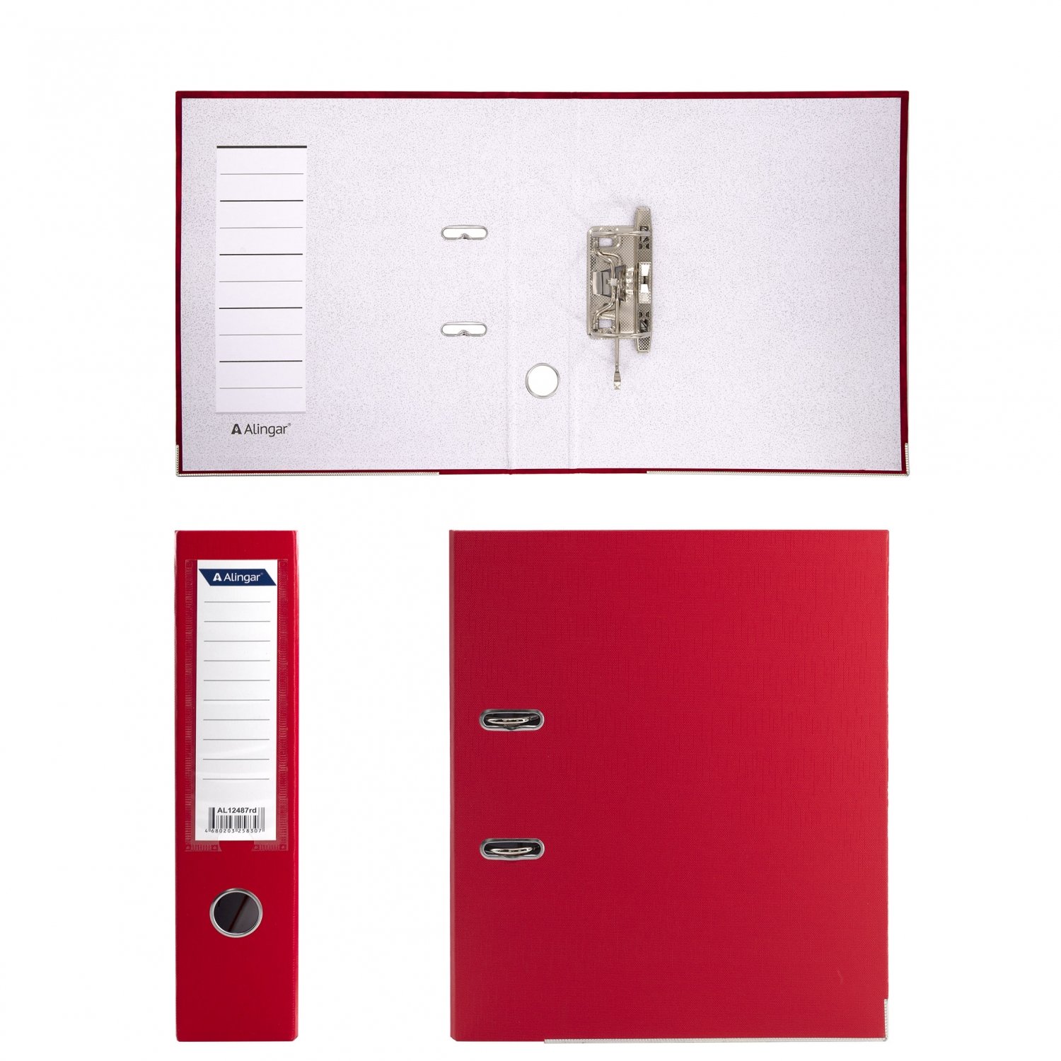 Папка-регистратор Alingar, А4, 70 мм, красный, ПВХ покрытие, фактура лен, карман на корешке, нижн. металл. кант, арочный механизм, неразборная