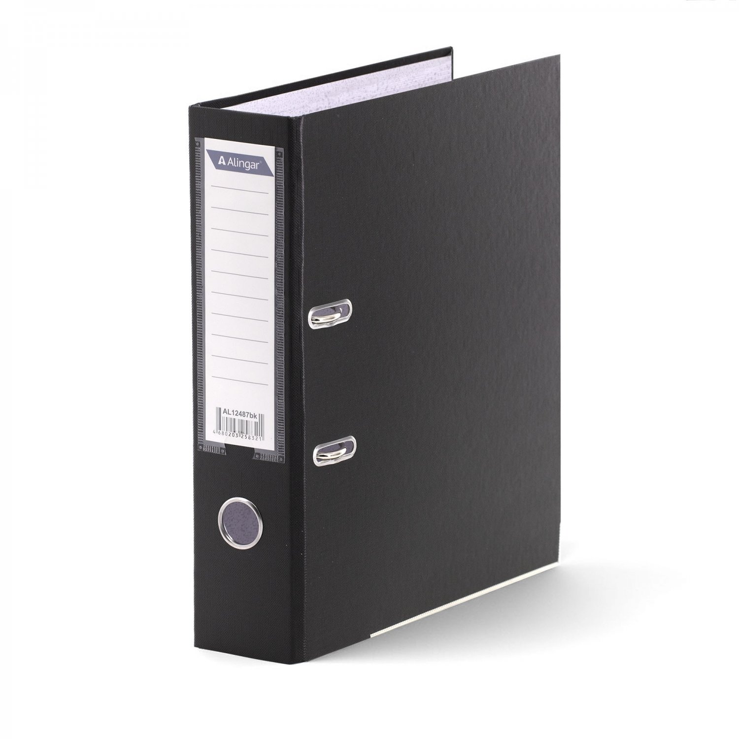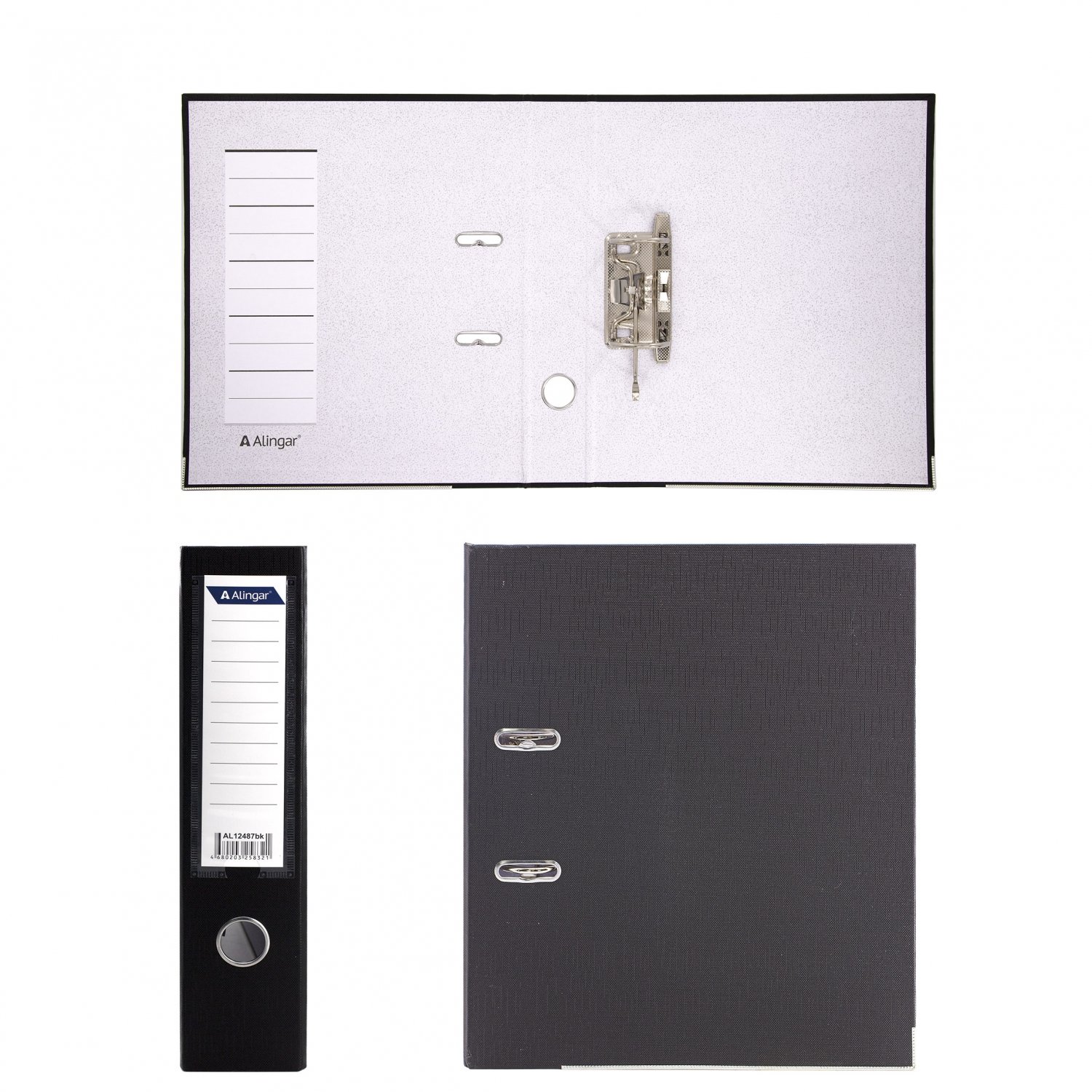 Папка-регистратор Alingar, А4, 70 мм, черный, ПВХ покрытие, фактура лен, карман на корешке, нижн. металл. кант, арочный механизм, неразборная