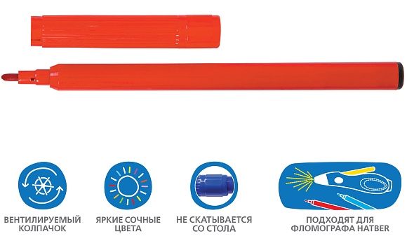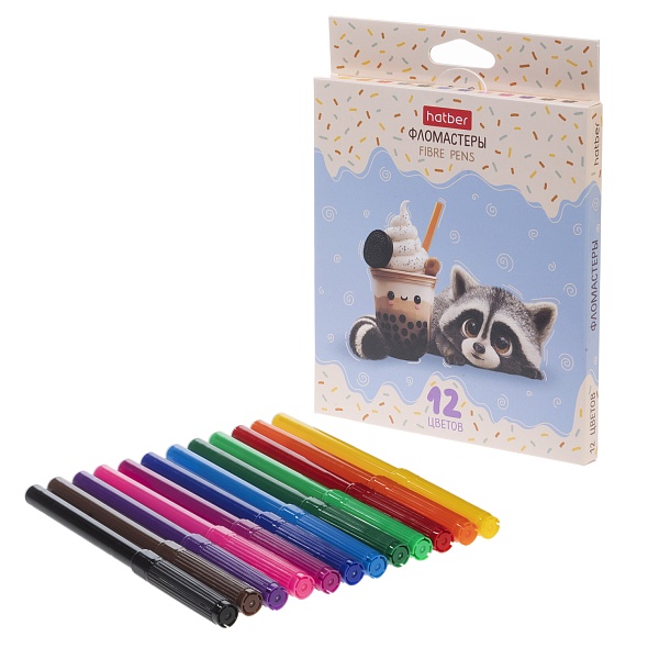 Фломастеры Hatber Вот Енот — это идеальный набор для рисования. 12 насыщенных цветов создают яркие рисунки превосходно ложась на бумагу ровной и чёткой линией. Чернила фломастеров Hatber на безопасной водной основе, не имеют запаха, смываются с кожи и большинства материалов с помощью воды и мыла. Рекомендованы для использования детьми старше 3-лет, дошкольниками и учениками младших классов. Корпус изготовлен из полипропилена, продлевающего срок службы фломастера. Безопасный вентилируемый колпачок плотно закрывается, предохраняя фломастер от высыхания. Минимальный срок годности фломастера — 5 лет. Диаметр пишущего наконечника — 2.3 мм, что подходит для создания тонких линий и раскрашивания больших деталей рисунка. Пишущий наконечник имеет специальную форму, исключающую его продавливание внутрь фломастера при сильном нажиме. Увеличенный объём чернил обеспечивает впечатляющую длину письма, — не менее 550 м. Красочная картонная упаковка предохраняет фломастеры от потери и повреждения.