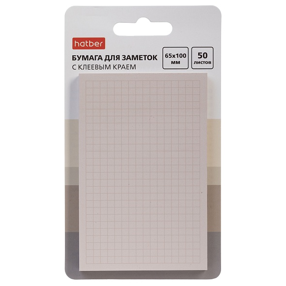 Бумага для заметок с клеевым краем 50л Hatber 65*100мм Кремовая в клетку европодвес 090343
