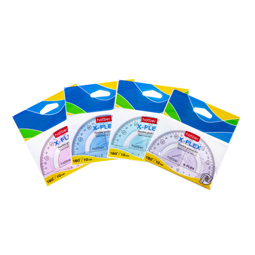 Транспортир 180°/10см пластиковый Hatber X-Flex в пакете европодвес в асс 067317