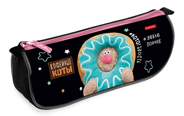 Пенал-косметичка на молнии 200*95*50мм Кофейные коты Hatber 76319