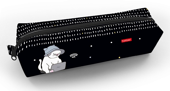 Пенал-косметичка на молнии 210*50*60мм Кошка в шляпе Hatber 61152