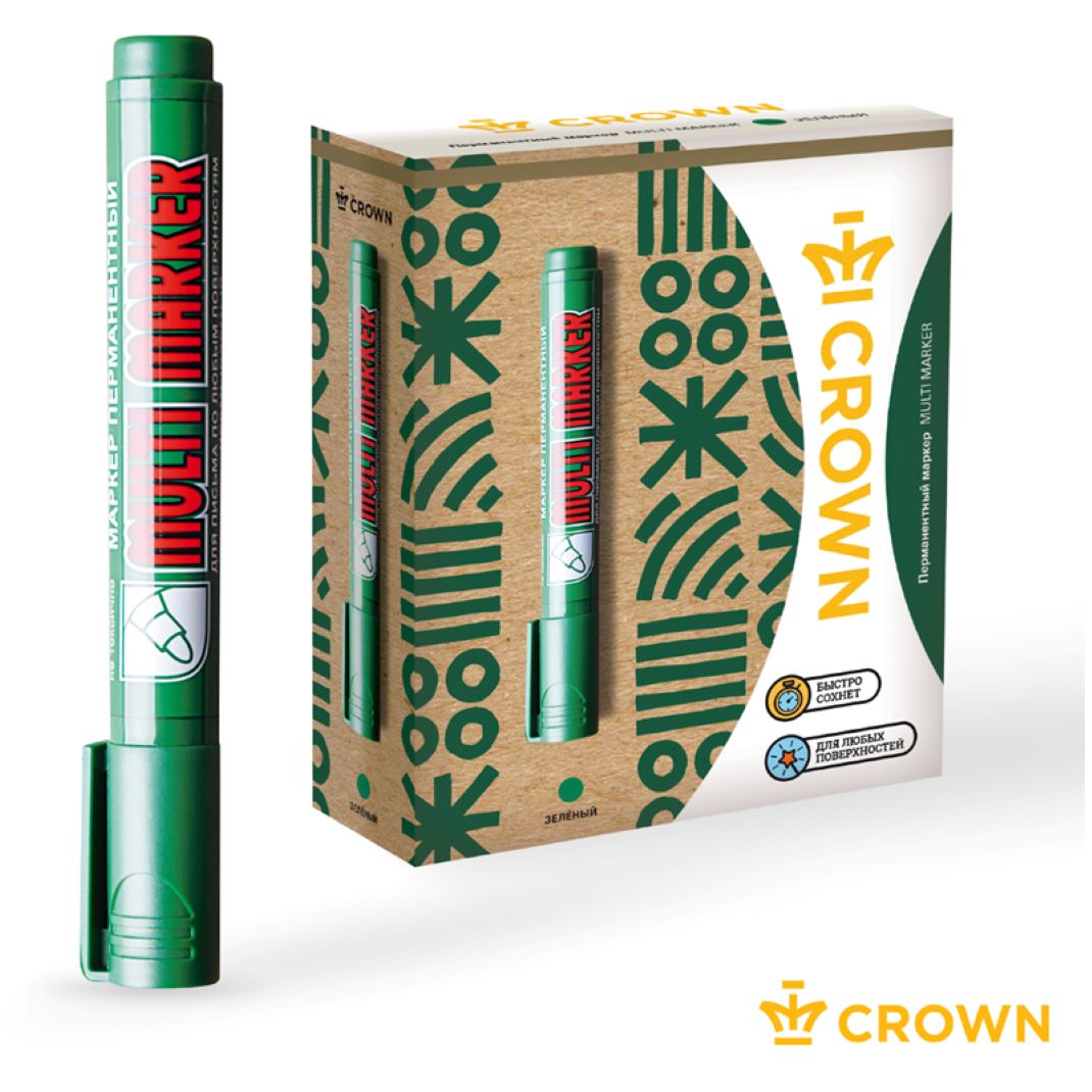 Маркер перманентный 3мм Crown «Multi Marker» зеленый пулевидный европодвес