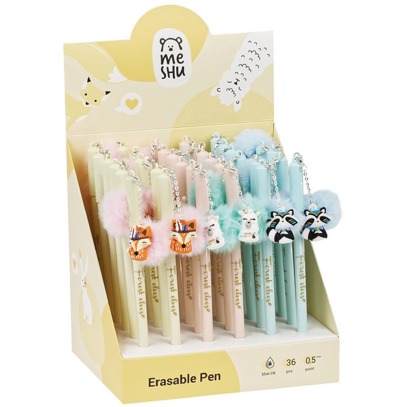 Ручка гел син 0,5мм MESHU «Fluffy Friends» стираемая с топпером корпус ассорти
