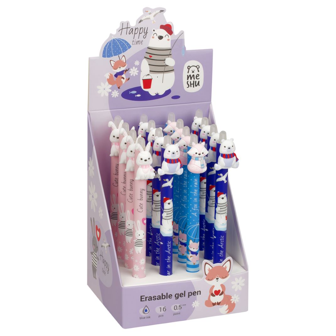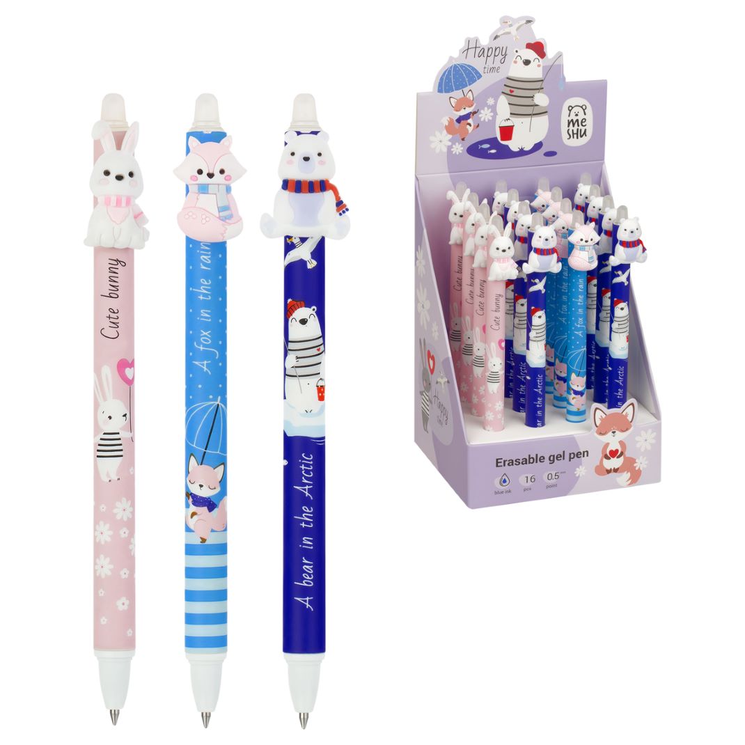 Ручка авт гел син 0.5мм MESHU «Funny friends» стираемая с топпером корпус ассорти