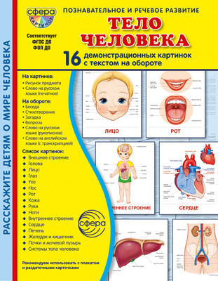 Демонстрационные картинки СУПЕР Тело человека В ПАПКЕ 16 демонстрационных картинок с текстом (173х220 мм)