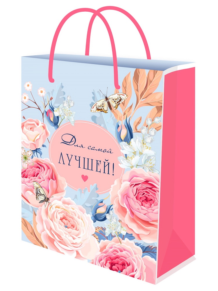 Пакет подарочный с глянц.ламинацией 26,4х32,7×8 см (L) Бабочки на цветах ППК-7863