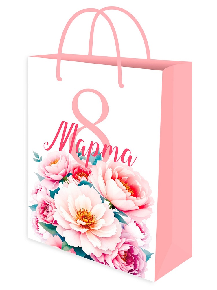 Пакет подарочный с мат.лам. и глит. 18х23х10 см (M) Пионы, 190г(собс.раз.) ППК-2751