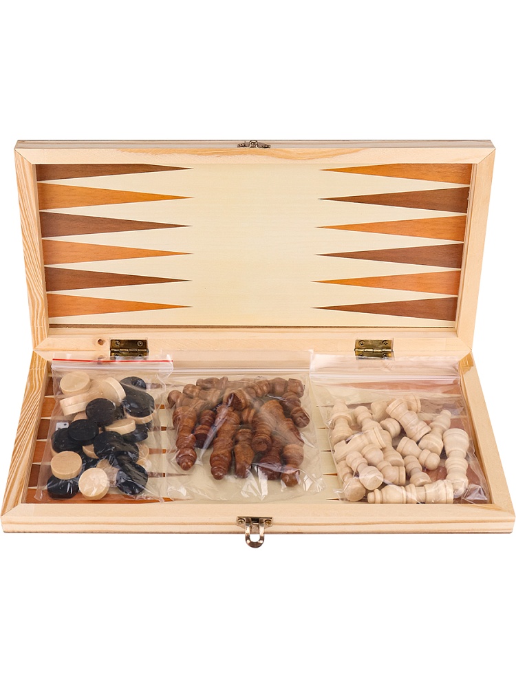 Наст игра Шахматы шашки нарды. Набор 3 в 1 «Умный ход» Доска и фигуры деревянные 24*12*3 см, ИН-7490
