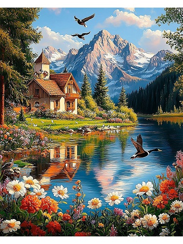 Алмазная мозаика (класс) 40х50 см, с подр., с полн. заполн. (30цв.) Тихий уголок у реки (Арт. НД-1288)