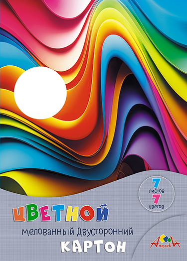 Картон цветной 7л 7цв А4 2-х сторонний мелованный Яркие волны Апплика 6796
