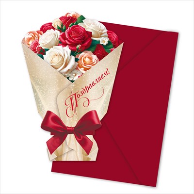 Открытка-букет «Поздравляем!» с художественным конвертом 1216