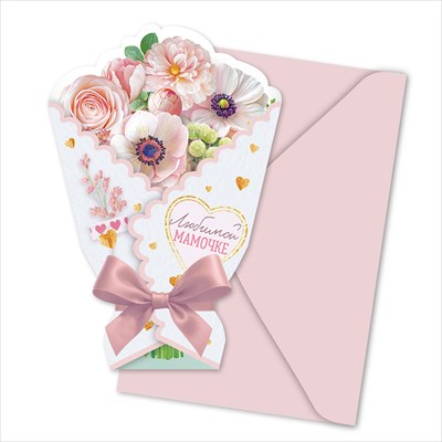Открытка-букет «Любимой мамочке» с художественным конвертом 1217