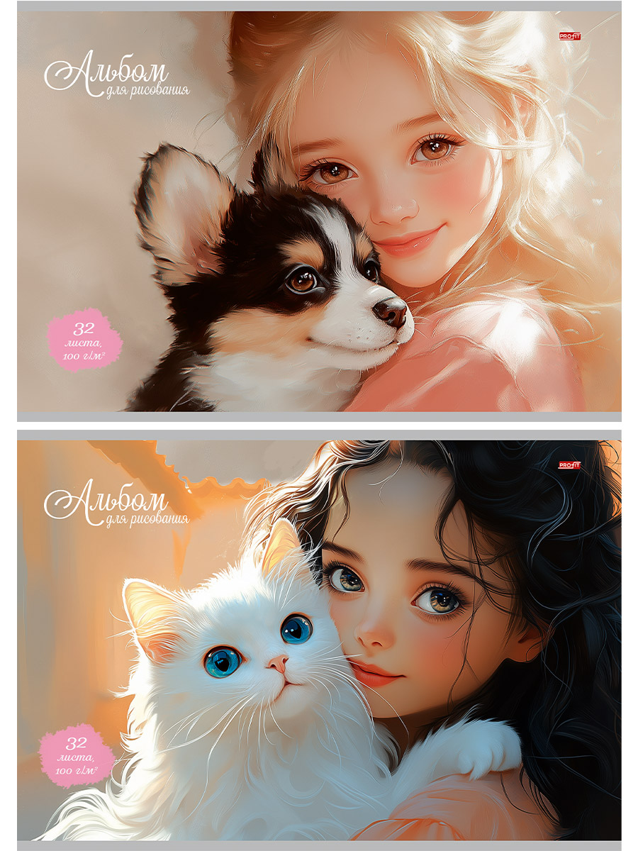 Альбом для рисования 32л ДЕВОЧКА И ЗВЕРУШКА (32-7257) скрепка, 2 диз в сп