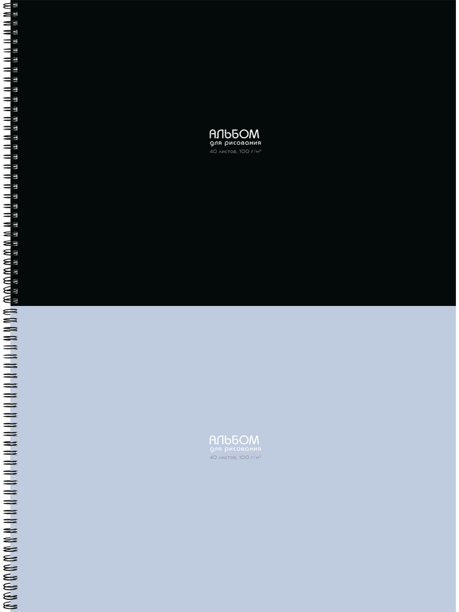 Альбом для рисования 40л на гребне КЛАССИКА ОДНОТОННАЯ — 8 (40-9094) 2 диз. в сп. офсет