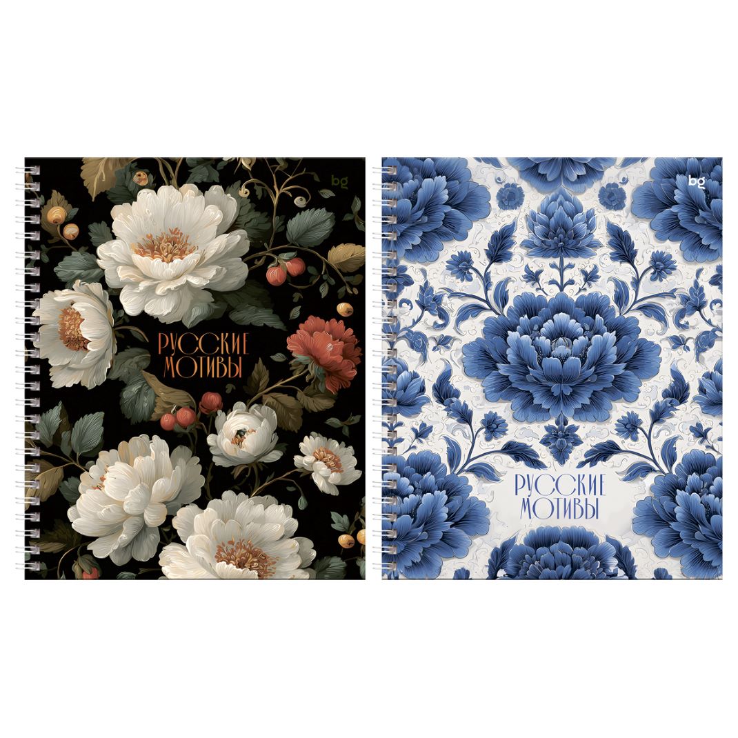 Тетрадь 80 клет на гребне BG «Русские мотивы» матовая ламинация, выб. лак твердая обложка ассорти 67196