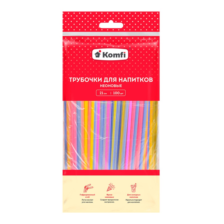 Трубочки для коктейлей гофрированные 5ммх21см 100 шт/уп. неоновые Komfi/40 KGT013P 5525