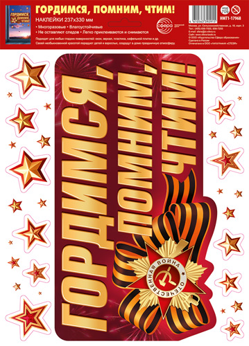 Наклейки на окна А4+. Гордимся, помним, чтим! (многоразовые) НМТ1-17968