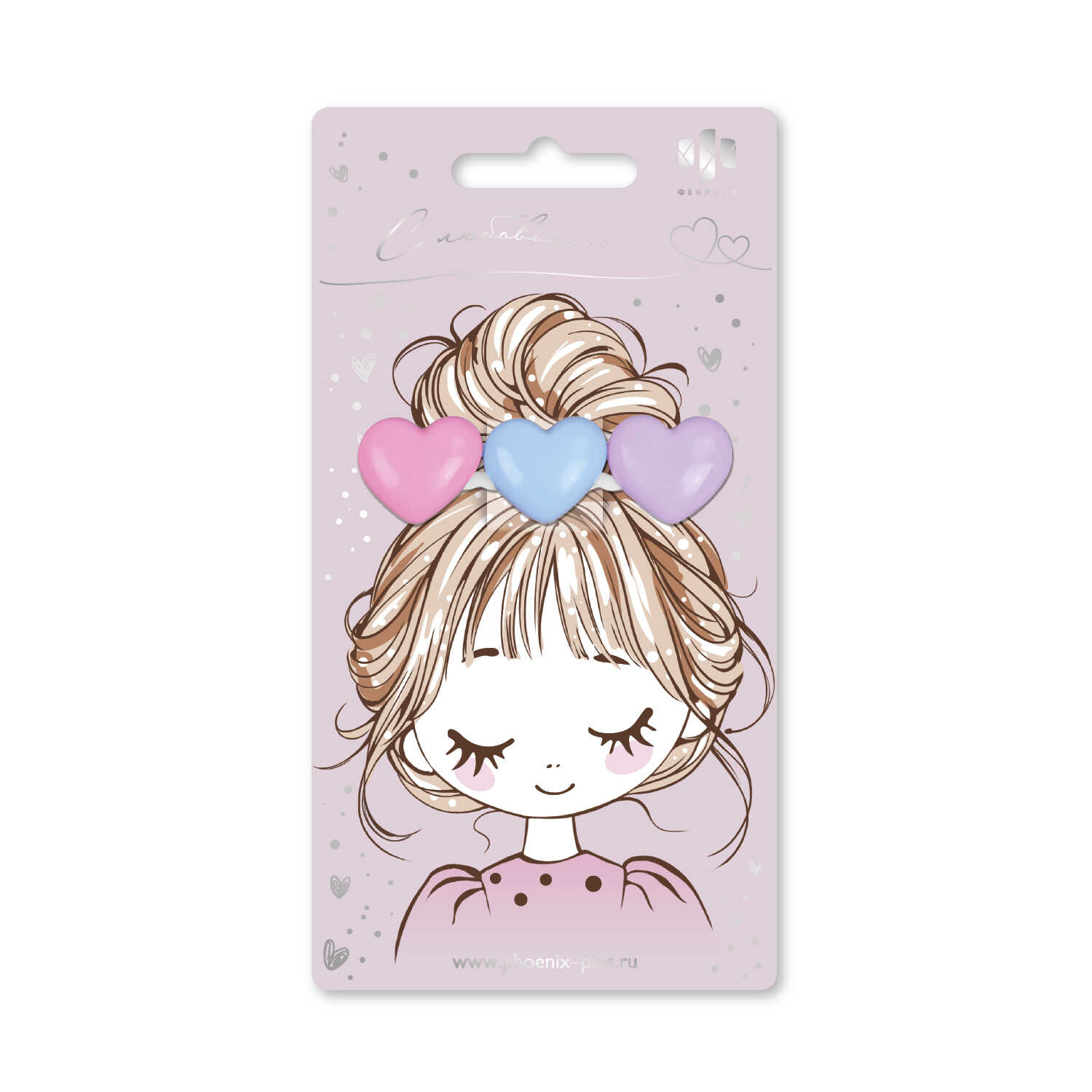 Заколка для волос «зажим», арт. 71772 / 10 СЕРДЕЧКИ (в наборе: 1шт., 6,5 см, черный металл, полиэфирная смола, цвет: розовый, фиолетовый, голубой, подложка из мелованного картона + ПЭТ-пакет с европодвесом)