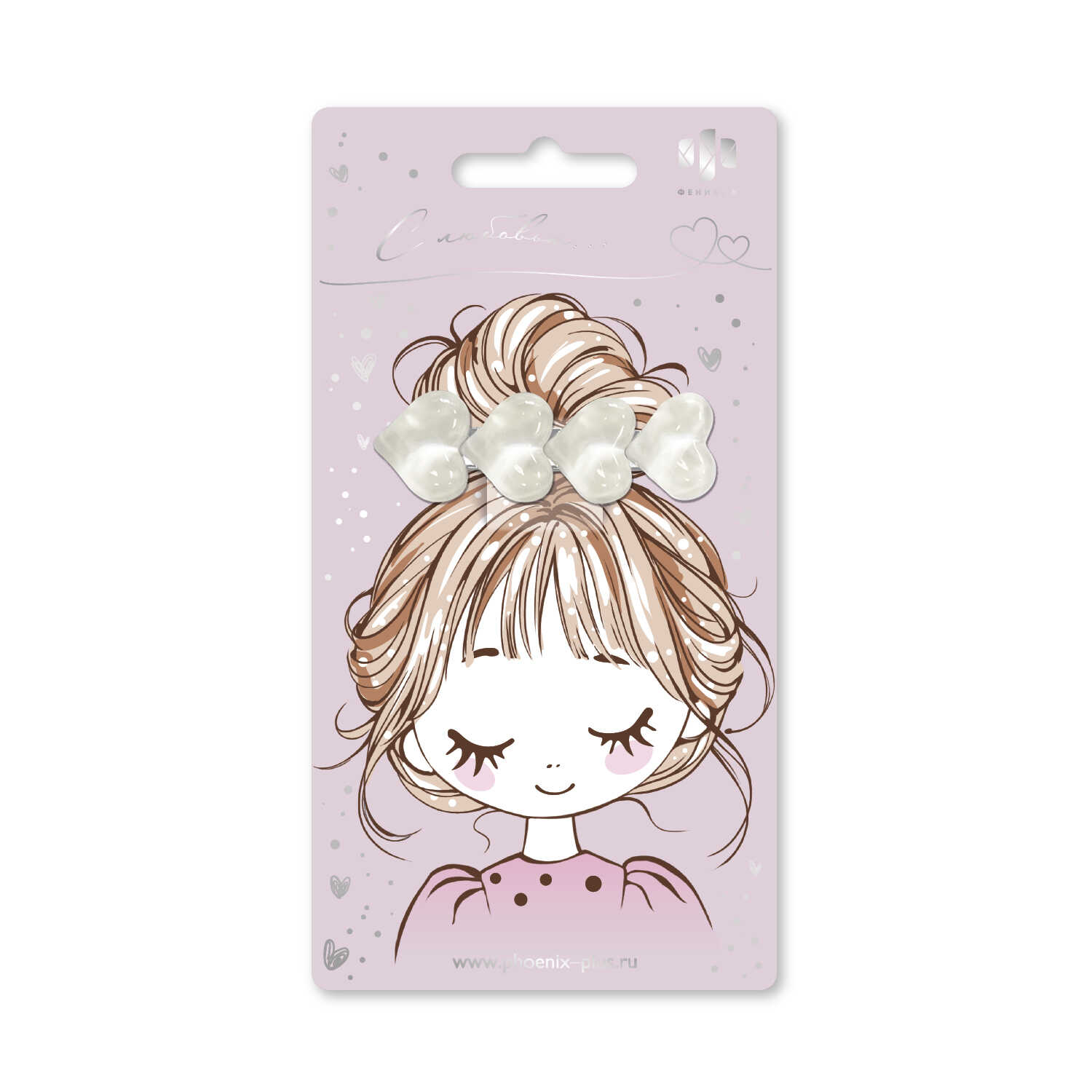 Заколка для волос «зажим», арт. 71791 / 10 СЕРДЕЧКИ (в наборе: 1шт., 6 см, черный металл, эпоксидная смола, цвет: белый, подложка из мелованного картона + ПЭТ-пакет с европодвесом)
