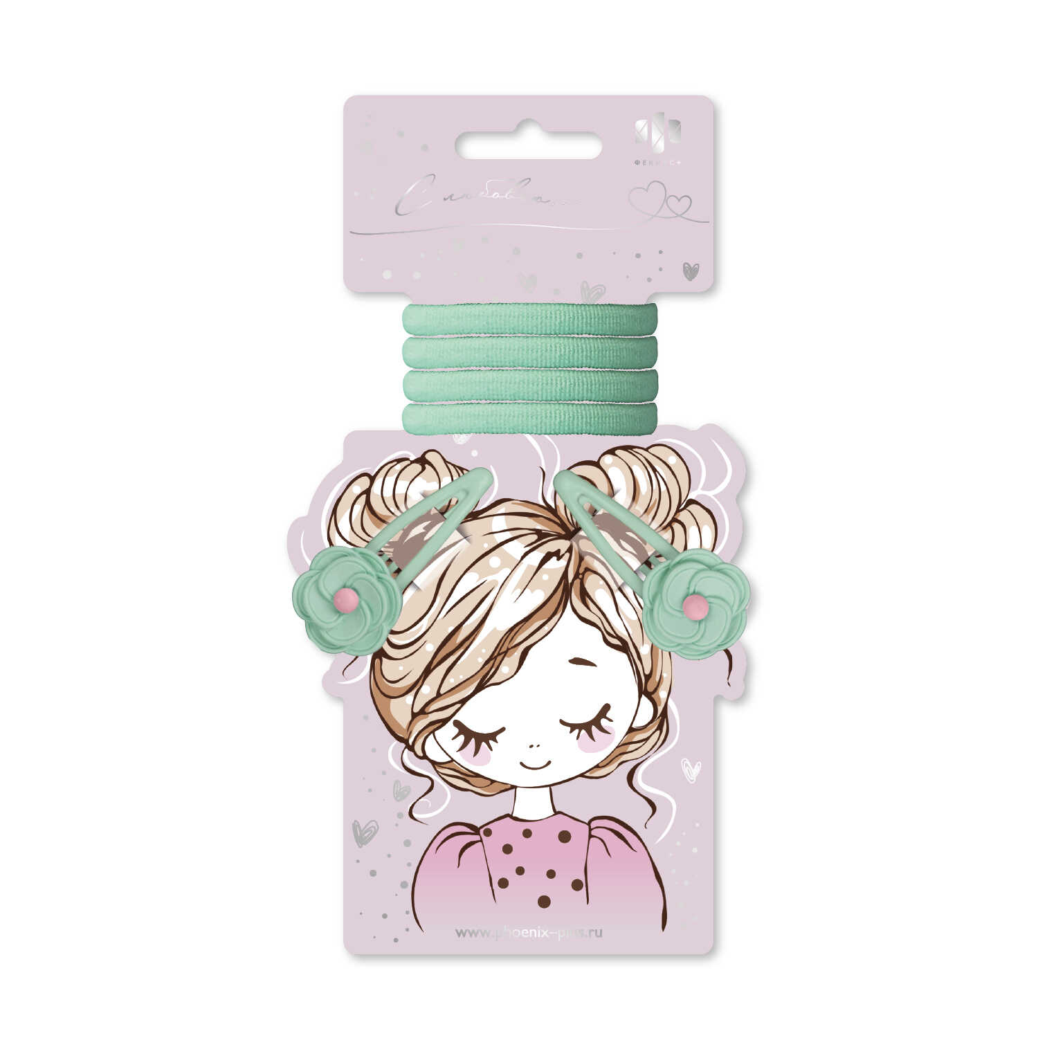 Набор аксессуаров для волос Цветочки (4 резинки, 2 заколки) мятный арт. 71761