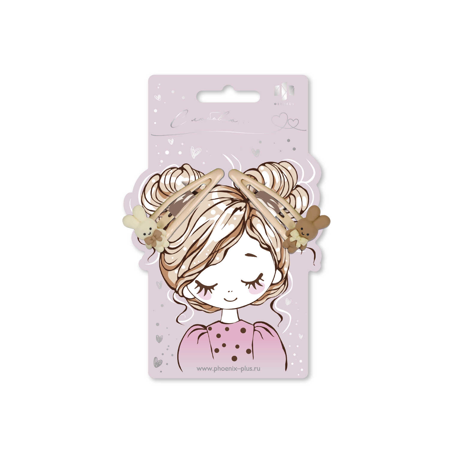 Набор заколок для волос «клик-клак», глянцевые, арт. 71748 / 10 ЗАЙКИ (в наборе: 2шт., 5,5 см, черный металл, полиэфирная смола, цвет: бежевый, подложка из мелованного картона + ПЭТ-пакет с европодвесом)