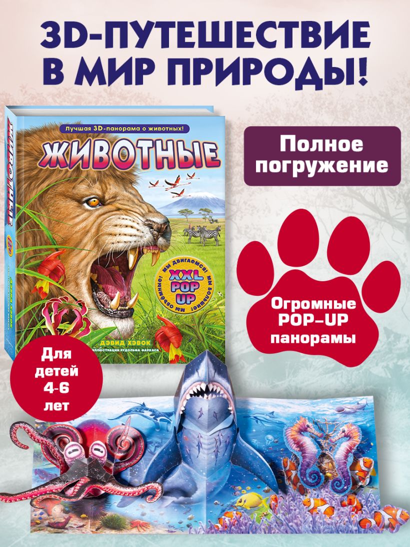 Интерактивная XXL энциклопедия о животных — это яркая детская энциклопедия с pop-up элементами, которые превращают чтение в увлекательное исследование мира природы.