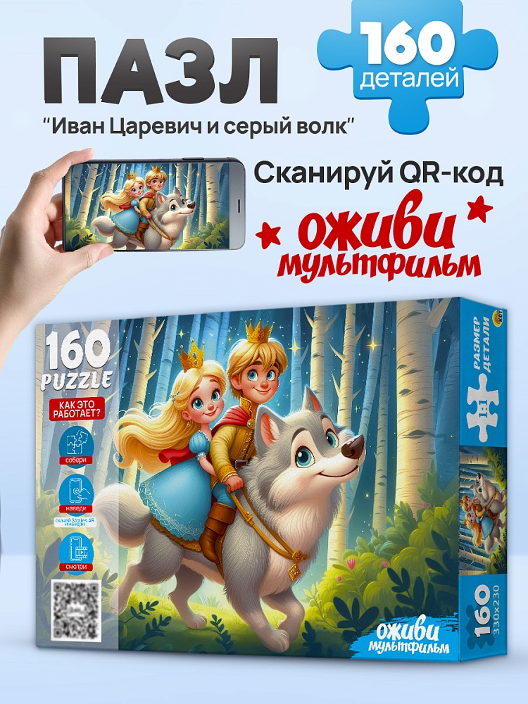 Пазлы 160 Оживи мультфильм Иван Царевич и серый волк П160-3546