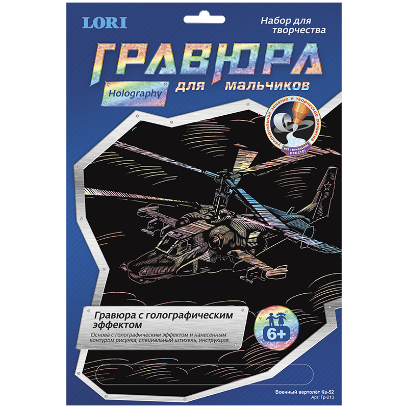 Гравюра Классика большая с эффектом голографик для мальчиков «Военный вертолет Ка-52» Гр-213