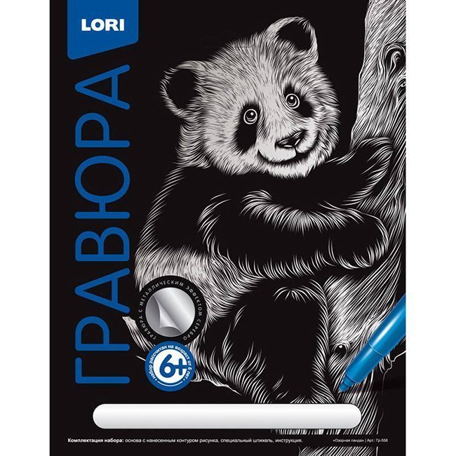 Гравюра Классика большая с эффектом серебра «Озорная панда» Гр-558