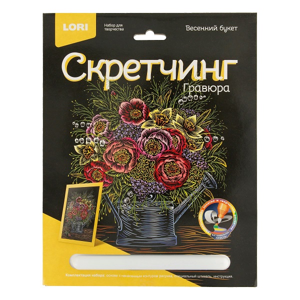 Гравюра Скретчинг 18*24см Цветы «Весенний букет» Гр-719
