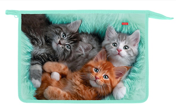 Папка для тетрадей на молнии 2отд А4 Котики бывают разными пластик в индив.упак. Hatber 04047