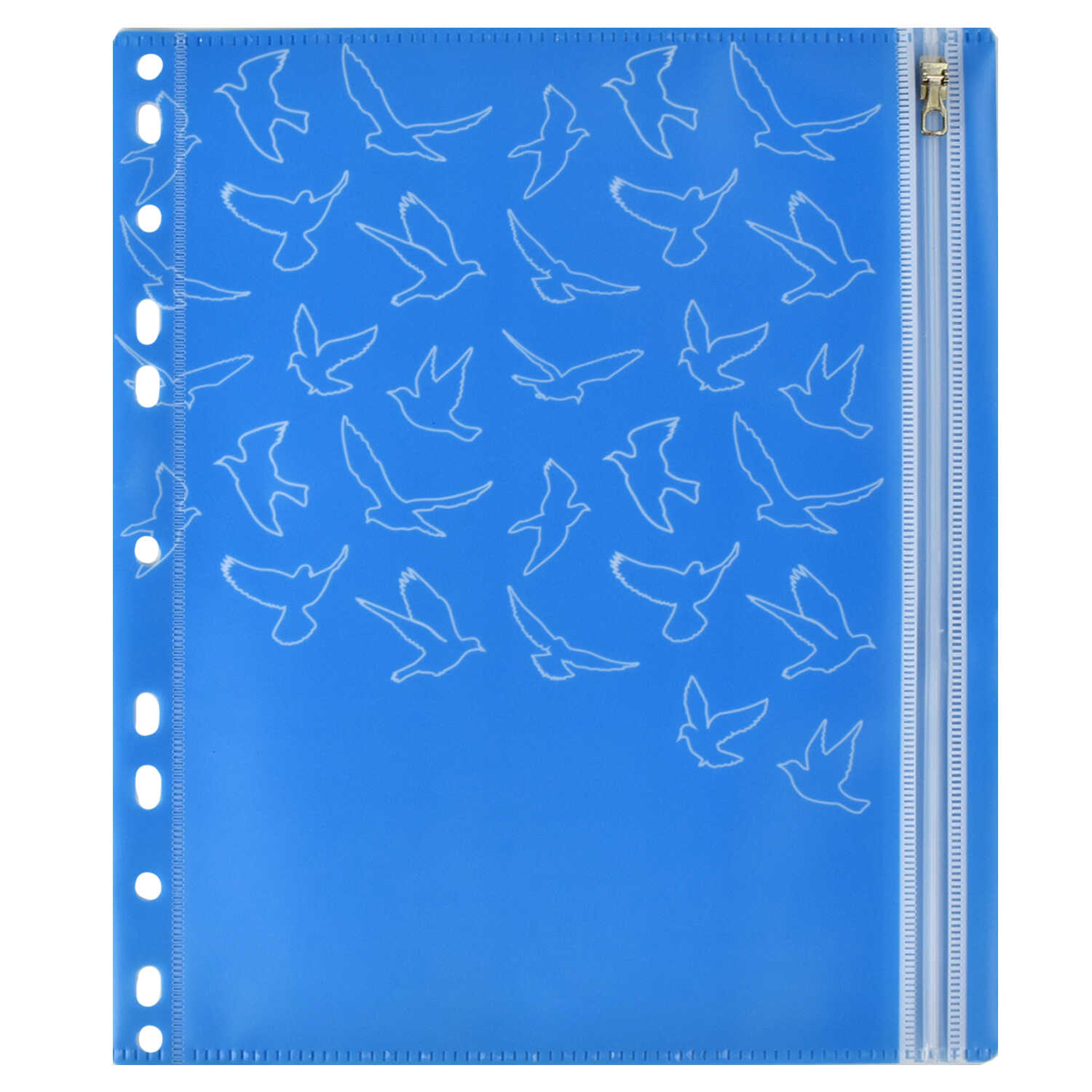Папка для документов 1отд А5, 25.5х21 Птицы пластик гибкая молния голубая арт.46704