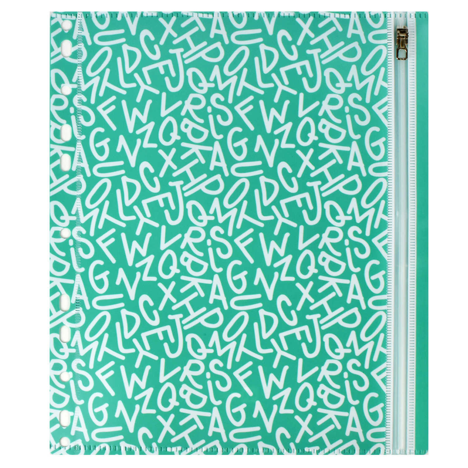 Папка д/документов арт.46706/12 БУКВЫ (А5, 25.5х21, одно отделение, пластик, перфорация, гибкая молния, УФ печать
