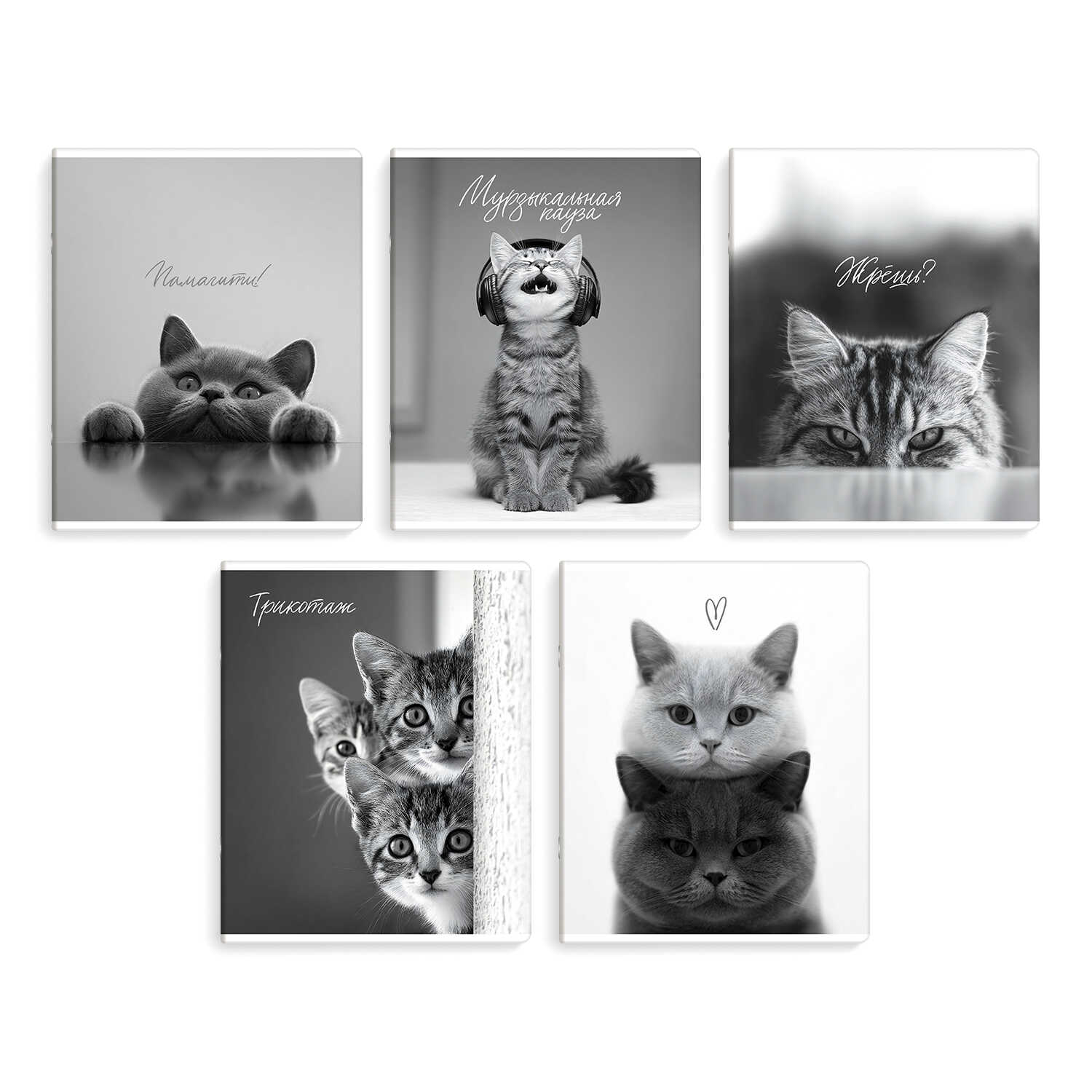 Тетрадь 48 клет Монохромные коты мягкий переплёт 2 скобы ассорти арт. 70920