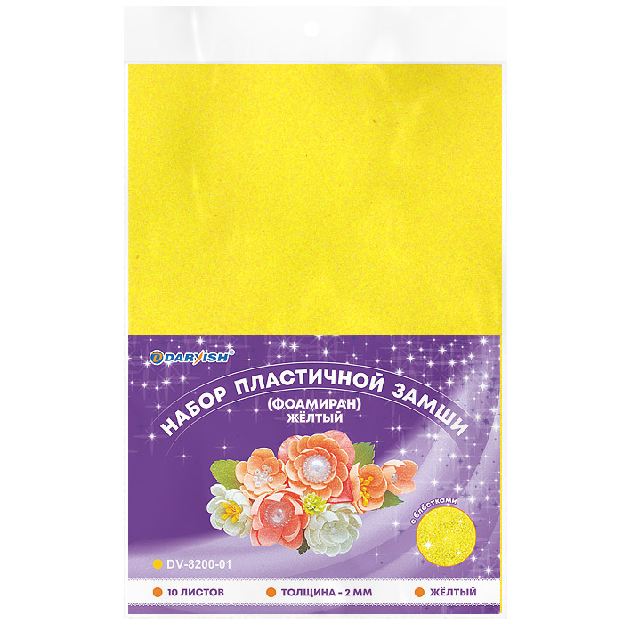 Фоамиран А4 10л с блестками Желтый 2мм Darvish 1859