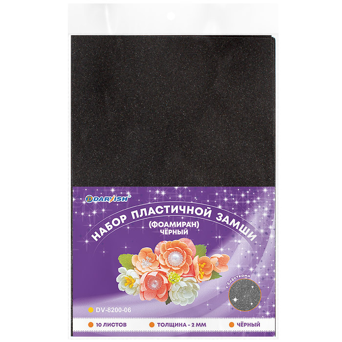 Фоамиран А4 10л с блестками Черный 2мм Darvish 1958