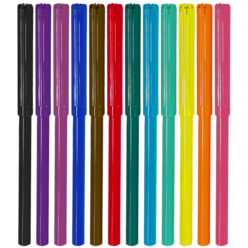 Набор фломастеров. 12 ярких цветов. Вентилируемый колпачок, смываемые чернила на водной основе. Упакованы в картонную коробку с подвесом.