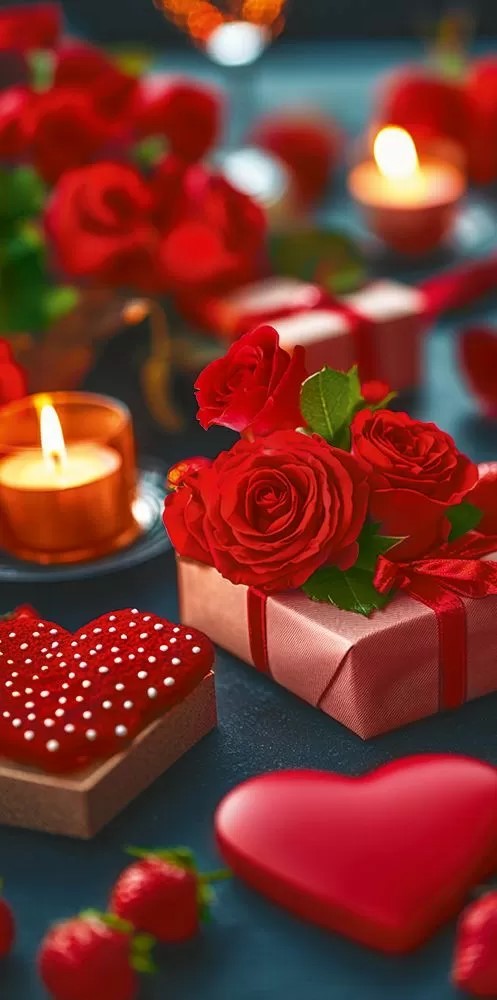 Конверт для денег без надписи (красные розы, сердечки и свечи) 1972
