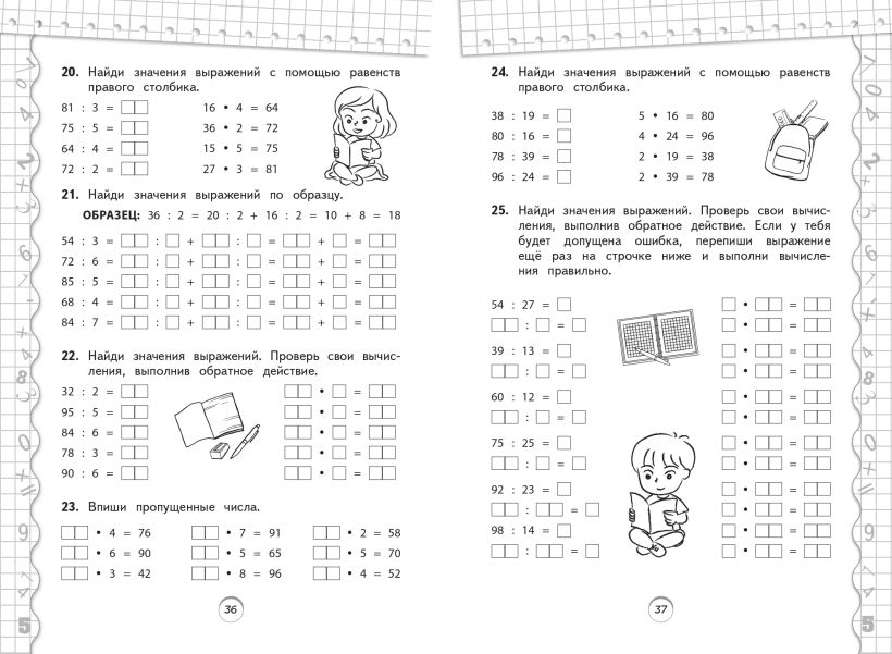 Пособие от издательства «Эксмо», соответствующее ФГОС, разработано специалистом с многолетним опытом работы и станет отличным помощником для учеников 3 класса в отработке умений и навыков, полученных на уроках математики. Решение большого количества примеров и задач на сложение и вычитание в пределах 1000, умножение и деление, деление с остатком, знакомство с долями даст возможность школьникам в дальнейшем избежать вычислительных ошибок и довести навыки счёта до автоматизма. Занимаясь по книге, учащиеся научатся анализировать информацию и понимать учебную задачу, а также смогут закрепить пройденный материал, восполнить пробелы в знаниях, развить математические способности, повысить успеваемость по предмету. Задания в тренажере построены таким образом, чтобы не повторять, а дополнять упражнения, которые предлагаются в школе. Благодаря этому его можно использовать в сочетании с любыми из существующих учебников по математике. Кроме того, в серию входят и пособия по русскому языку для 1, 2, 3 и 4 класса. Только постоянная практика позволит школьнику уверенно чувствовать себя на уроках и получать отличные оценки.