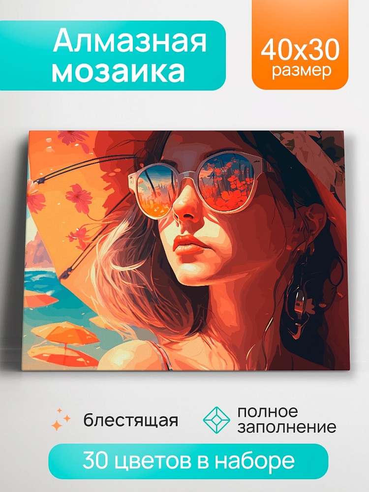 Алмазная мозаика (блест.) 30х40 см, с подр., с полн. заполн. (30цв.) Девушка на пляже (арт. АЛМ-0024)