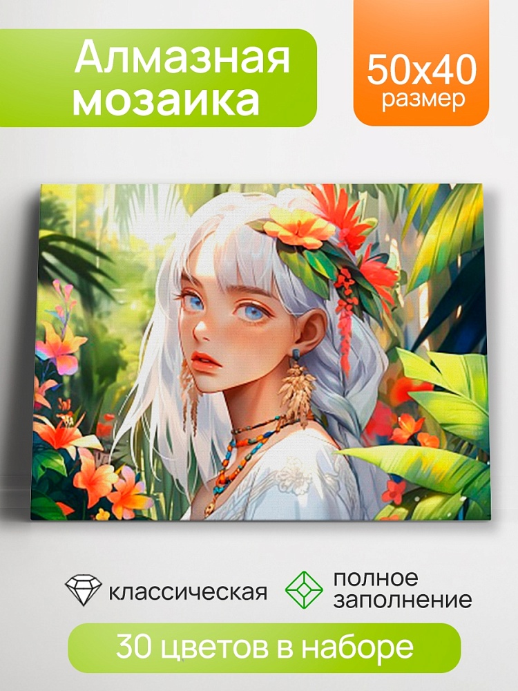 Алмазная мозаика (класс.) 40х50 см, с подр., с полн. заполн. (30цв) Принцесса джунглей (Арт. НД-0634)