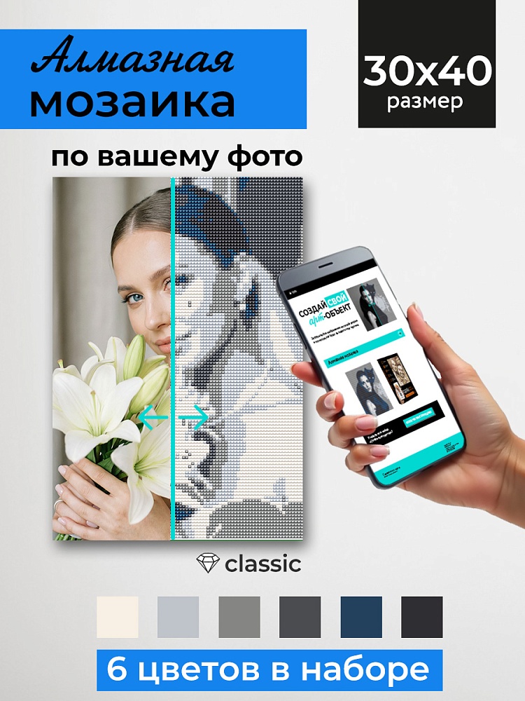 Алмазная мозаика 30х40 см Селфиконструктор 6 цветов Ретро (Арт.СКА-2457)